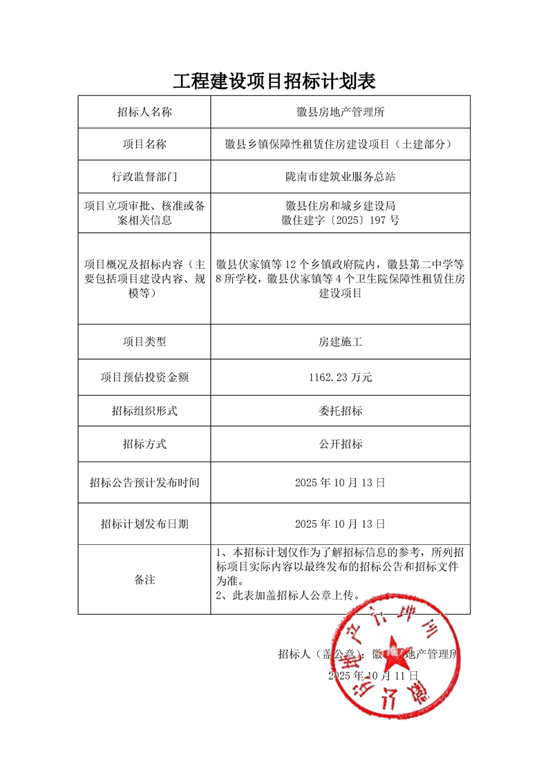 徽縣鄉(xiāng)鎮(zhèn)保障性租賃住房建設項目(土建部分)