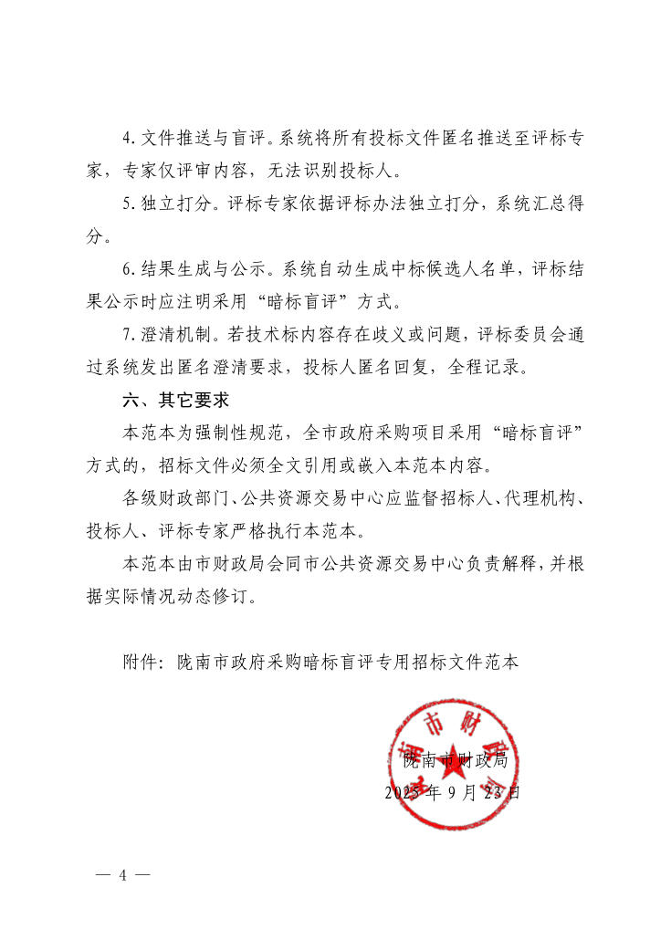 隴南市關(guān)于進(jìn)一步規(guī)范政府采購(gòu)暗標(biāo)盲評(píng)專用招標(biāo)文件范本制定要求的通知